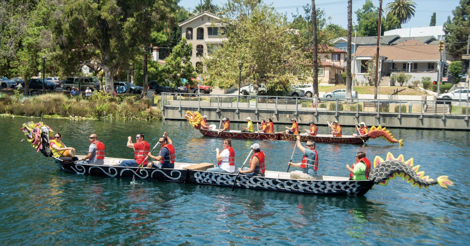 На фестивале была представлена ​​китайская гонка на лодках-драконах. Это событие является культурным фестивалем в Китае и Гонконге, но не происходило в Соединенных Штатах. Идея этого мероприятия была спланирована Хелен Янг, возглавившей первый фестиваль Лотоса в городе Лос-Анджелес. Она постоянно пыталась добавить новые идеи, чтобы обогатить Лос-Анджелес культурой азиатских и тихоокеанских островов. Хелен начала обсуждать план включения гонки на лодках-драконах к фестивалю с доктором Петерсоном. Он вместе с другом построил две лодки-драконы. После завершения строительства, лодки были окрашены в два разных цвета — черный и красный. Оригинальная голова и хвост лодки-дракона были изготовлены из деревянной рамы и стекловолокна для жесткости и сохранения водонепроницаемости.